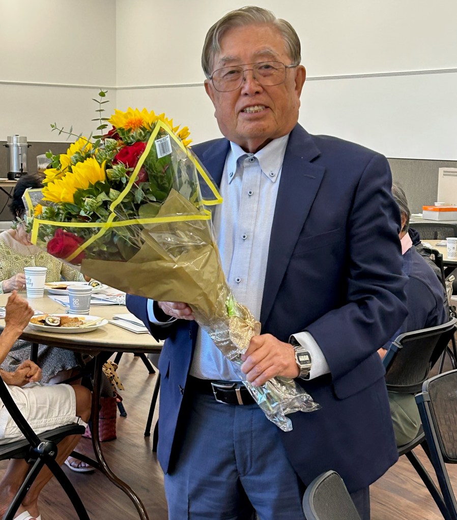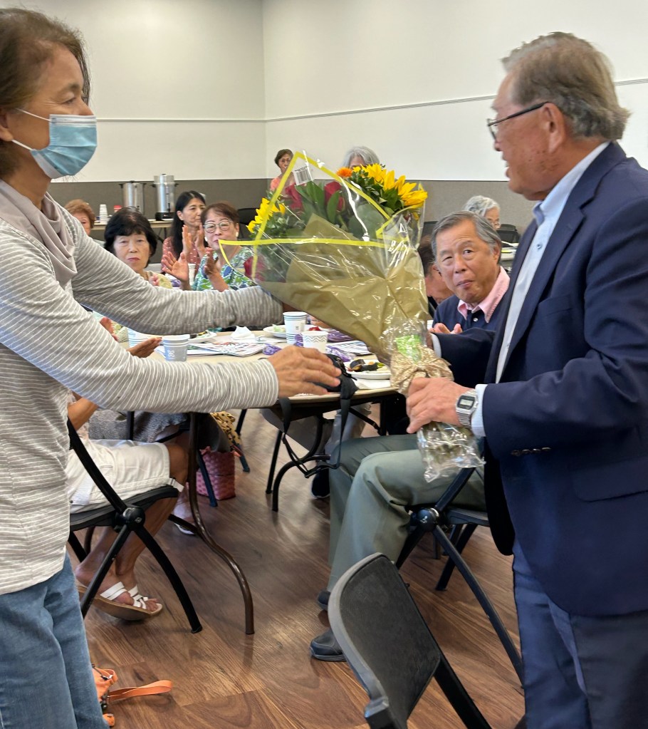 8月の例会は2015年以来ずっとJCCの会長を務められた小坂田さんが日本に帰られることになり正式に会長を辞められ、新会長の山本さんを迎えての初めての例会でした。この例会ではその小坂田前会長の「お別れ会」とKEIROの青山裕美さんが「 敬老が資金提供してプロビデンスと連携している高齢者に役に立つ大事な医療サービス「癒しケアー」についての説明会という2本立てでした。